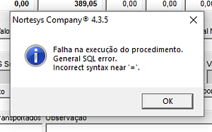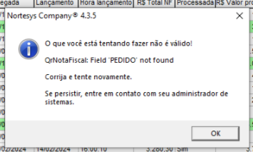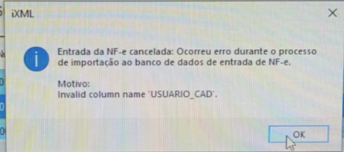 Corrigida não conformidade no sistema quando o usuário realizava o processamento da NF-e de entrada e o sistema retornava o seguinte erro: