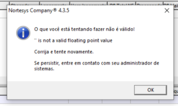 Corrigida não conformidade no sistema quando o usuário realizava a impressão de uma conferencia de NF-e retornando uma mensagem de erro: "" is not a valid floating point value.