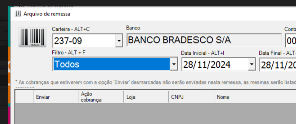 Corrigida não conformidade quando o usuário realizava a pesquisa dos boletos para geração da remessa e alguns campos não habilitava para utilizar.