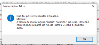 Corrigida não conformidade no sistema ao realizar emissão de NF-e complementar e o sistema retornava uma mensagem da tag Agropecuária.