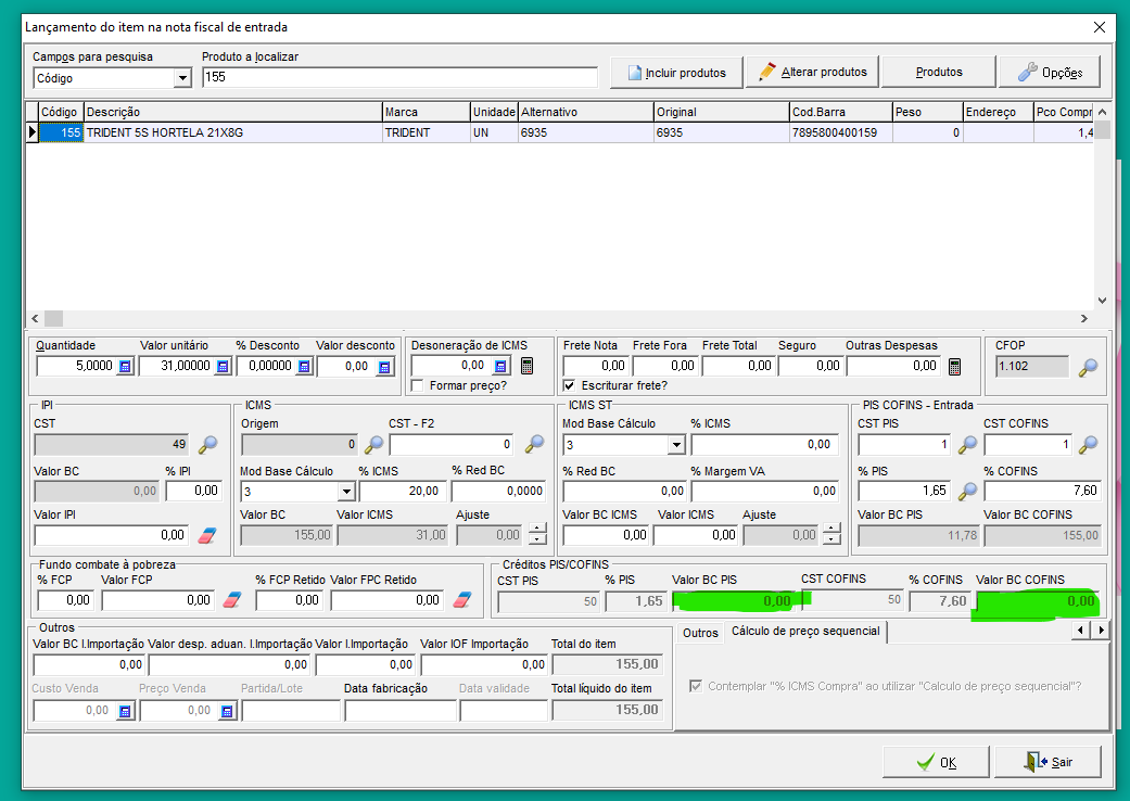 Ao realizar a importação da NF-e no iXML e MD-e o sistema realiza o cálculo de valores de PIS e COFINS automaticamente na NF-e de entrada, de acordo com a figura configurada no produto.
