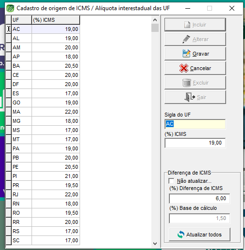 Nas próximas versões o usuário terá total autonomia para realizar a alteração do ICMS na tela de Origem de ICMS.