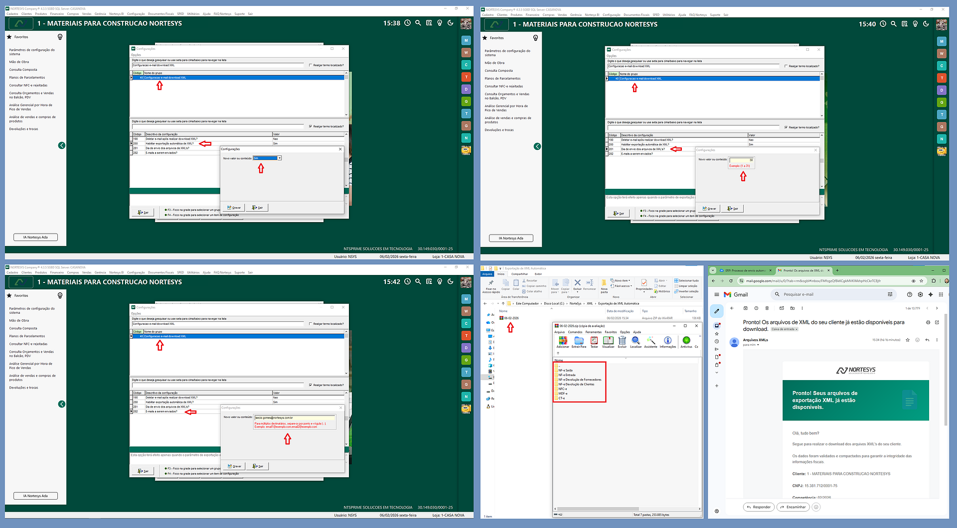 Implementado no ERP o processo automÔtico de exportação, compactação e envio por e-mail dos arquivos XML de documentos fiscais, com base em configurações parametrizÔveis pelo usuÔrio.