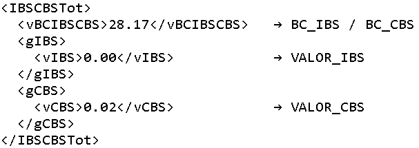 SELECT BC_IBS, BC_CBS, VALOR_IBS, VALOR_CBS