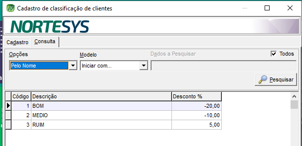 Ao habilitar o usuário deverá ir em Cadastro | Classificação de clientes e preencher no campo o Percentual, lembrando que se for negativo nas vendas balcão irá assumir desconto se for positivo irá assumir acréscimos.