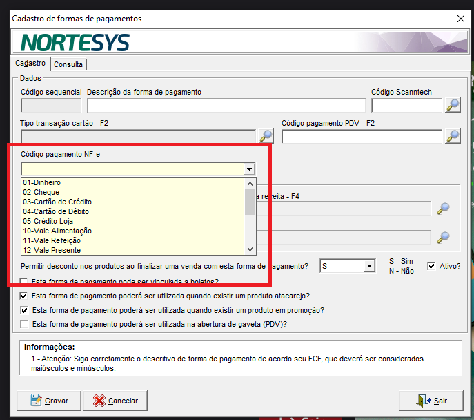 🔎 Agora, o sistema valida corretamente o campo Codigo pagamento NF-e do cadastro da forma de pagamento, evitando essa rejeição.
