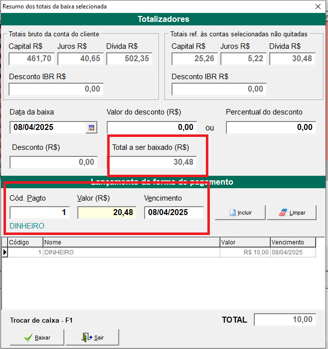 Ao informar o número da forma de pagamento, o sistema exibe automaticamente a descrição correspondente 💳📋
