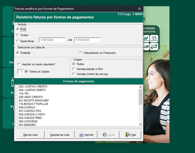 ✨ Foi identificada a necessidade de uma melhoria no relatório Analítico de Faturas por Forma de Pagamento, localizado em: