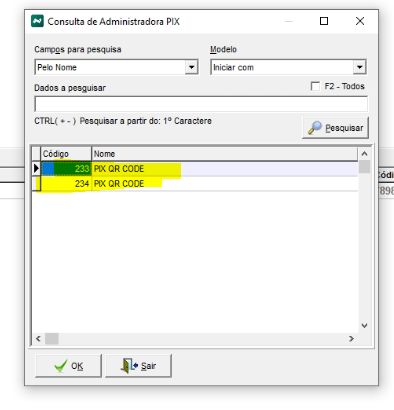 No momento de lançar o PIX durante o faturamento, o sistema está exibindo também as administradoras inativas, quando deveria apresentar apenas as administradoras ativas.