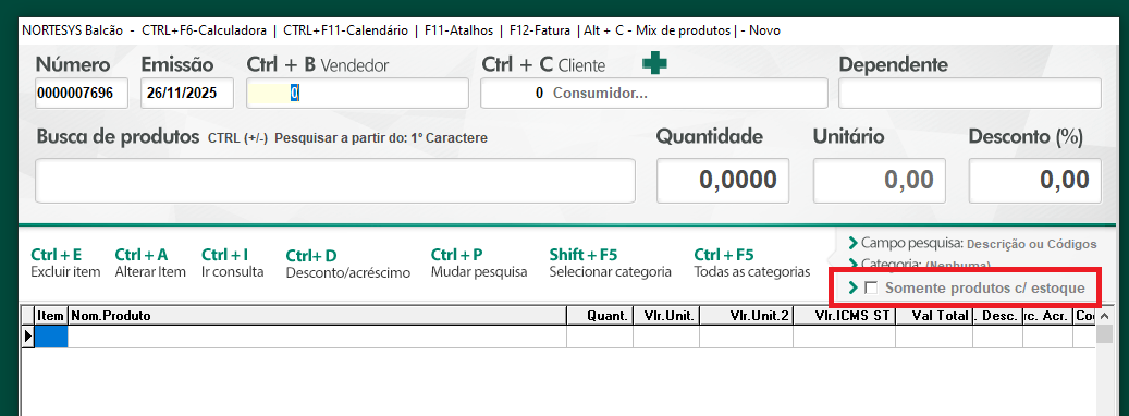 ⚙️ Quando este marcador estiver habilitado, o sistema ajustará o SELECT da consulta para exibir apenas produtos com estoque maior que 0;