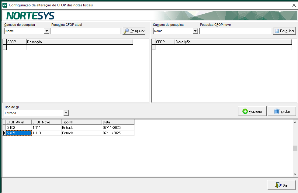 🔁 Caso exista uma configuração correspondente para o CFOP atual, o sistema substitui automaticamente o CFOP original do XML — tanto no cabeçalho quanto nos itens — pelo CFOP configurado na tabela;